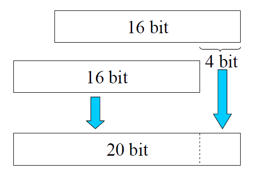 Program Counter (physical address) = CS:IP = code segment*16 + Instruction Pointer (EA effective address)