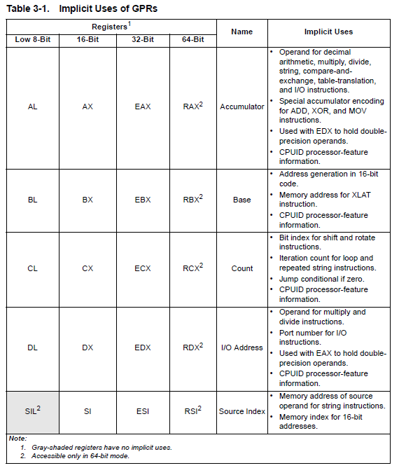 for use both to hold operands and for addressing. The lower half of each 32-bit Intel386